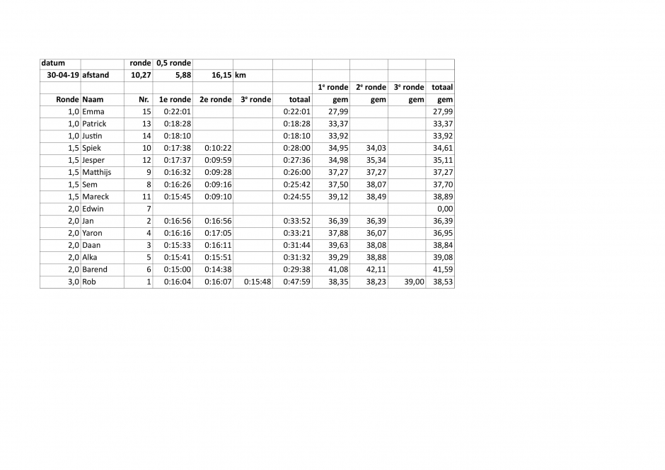 Bijgaand de uitslagen van de laatste meting voor het DK tijdrijden op 21 mei.