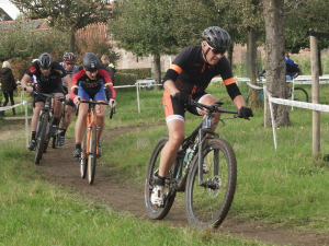 Nou dat had hij dan gauw goed onder controle, want vanaf het begin van de wedstrijd voor de Masters 40+ zat hij lekker van voren samen met Freek de Jong (Enspijk) en Micha de Vries. Daarachter waren het Wilfred Veldkamp en Lars Rietveld die probeerden om de aansluiting te vinden.