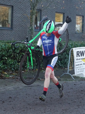 Ook bij de veldrijders moest de latere winnaar, Rory Appeldoorn, in de eerste twee ronden afrekenen met enkele tegenstanders zoals onderstaande foto uit de tweede ronde laat zien.