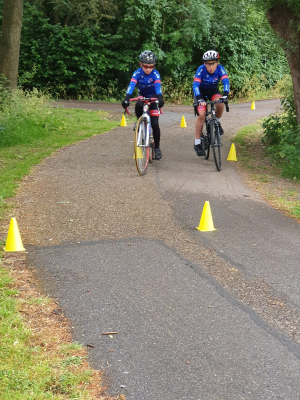 Het grootste geheim van de WTC Woerden. Normaal gesproken wel, maar voor deze ene keer dus niet. Voor menigeen is de smokkelroute een onbekend fenomeen, iets van andere tijden of in ieder geval meer iets voor de grensstreken. Voor onze WTC kids is het net zo normaal als eten, drinken en fietsen. Als een jeugdtrainer smokkelroute zegt of zelfs maar mompelt wordt er al tevreden geglimlacht, even opgelucht ademgehaald. Ze weten dat ze even het gas eraf kunnen halen, even kunnen ontspannen, even een slokje water kunnen nemen, wat extra uitleg krijgen en dan weer verder gaan. Voor de duidelijkheid de smokkelroute is het kleine extra zijpaadje aan de achterkant van ons parkoers. Altijd dapper gebruikt voor korte onderbrekingen om zo de andere trainingsgroepen niet in de weg te staan. Momenteel (met de aangepaste coronatijden) doen we aan het eind van de training of voor de training ook een stukje extra techniek training daar, deze keer vastgelegd door jeugdtrainer/fotograaf Hanneke (bedankt!). Oefening: Met zijn tweeën, strak naast elkaar, slalommend tussen de mooie gele pionnen door.