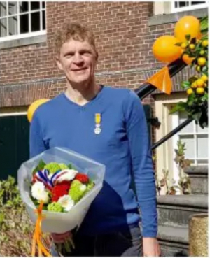 Op onderstaande foto zien we Nico samen met Arnold Cramer (helemaal links) die ook een koninklijke onderscheiding ontving. Net zoals Nico oprichter van Rennersclub De Eendracht en samen actief bij KNWU district midden, plus nog andere vrijwilligers activiteiten. Ook Arnold: gefeliciteerd!