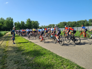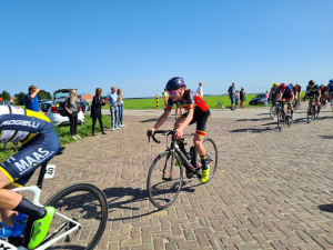 Daar was die dan eindelijk. De eerste echte nationale wedstrijd voor junioren. Een mooie klassieker over de, gelukkig voor onze junioren, drooggelegde bodem van de Zuiderzee. Prima georganiseerd met permanence, vertrek/finish en ruime parkeergelegenheid bij Flevonice. Op leuk parkoers, goede begeleiding, over het algemeen prima asfalt en ook een verrassende gravelstrook/bospad door het bos. Namens de WTC 4 mannen aan de start. Marick, Matthijs, Daan en Jesper. Allen gebrand op uitrijden en hoog in de uitslag eindigen. Helaas zat dat er voor Daan en Matthijs niet in. Beiden raakten al vroeg in de wedstrijd bij een valpartij betrokken. Daan eindigde daarom wel heel snel in de bezemwagen, knie open, fiets kapot. Helaas volgende keer beter. Matthijs kwam door de valpartij in een tweede groep terecht, die langzamerhand steeds meer terrein verloor op het peloton en uiteindelijk werd hij na zo'n 70km wedstrijd uit koers gehaald. Jesper had het ook zwaar, maar kon zich met hangen en wurgen handhaven in het peloton en was superblij om zijn eerste juniorenklassieker meteen uit te rijden. Marick had nog iets meer over en kon naar een mooie 8e plaats sprinten. Super gewerkt allemaal mannen, voor sommigen was het avontuur erg kort, maar dat hoort er nu eenmaal bij.