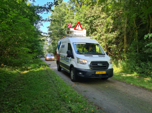 Na de wedstrijd. Alle begeleiding heeft de voertuigen geparkeerd en pakt even een welverdiend verfrissend drankje.