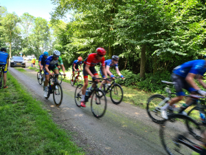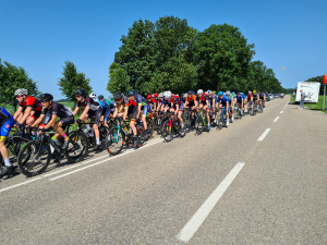 Jesper (rechts achterin het peloton). Niet echt gunstig geloot zeg maar.