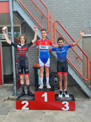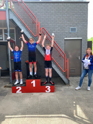 Helaas kreeg Marten een pedaal in zijn kuit van een concurrent en dat verprutste zijn sprint, Rubin sprintte naar een mooie 7e plek (4e bij de jongens) en Lucas werd 9e. Marten eindigde als 19e. Het is niet helemaal duidelijk, maar het lijkt erop dat dit goed genoeg is om straks op 11 juni alle 3 aan te mogen treden in Nijverdal op het NK.