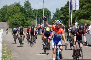 Floris ging in categorie 4 van start tegen een 20-tal medestrijders. Met weinig wind en een lekker zonnetje was het ideaal fietsweer, maar dat maakte het ook moeilijk om weg te komen. Diverse pogingen, waaronder ook van Floris, bleken tevergeefs. Aan de achterkant wapperde er af en toe iemand af, maar een massasprint was onontkoombaar. Floris weet hoe hij moet winnen in Amersfoort - de week ervoor won hij al in de MNC- en ook nu lukte dit. Een machtige sprint bracht hem van plek 7 op 200 meter van de finish, tot een sterke 1e plek aan de finish. Helaas zonder beker, maar met een trotse blik EN een NK kwalificatie namen we afscheid van Amersfoort.