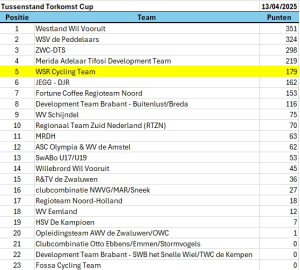 WSR cycling team NWL jongens staat 5e in het ploegenklassement van de Toekomstcup.