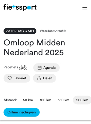 Vanuit Woerden 4 afstanden: 50 en 100 km. starttijd 08.00--10.00 uur
