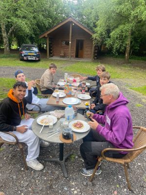 Via een van de stafleden hadden we een prima overnachtings plek geregeld op het Sportlandgoed Zwartemeer op de grens met Duitsland, met een mooie gelegenheid om een kampvuur te maken. Dat was dus ouderwets fikkie stoken voor de jongens, terwijl de ouders ondertussen een heerlijke pasta-party-maaltijd maakten!